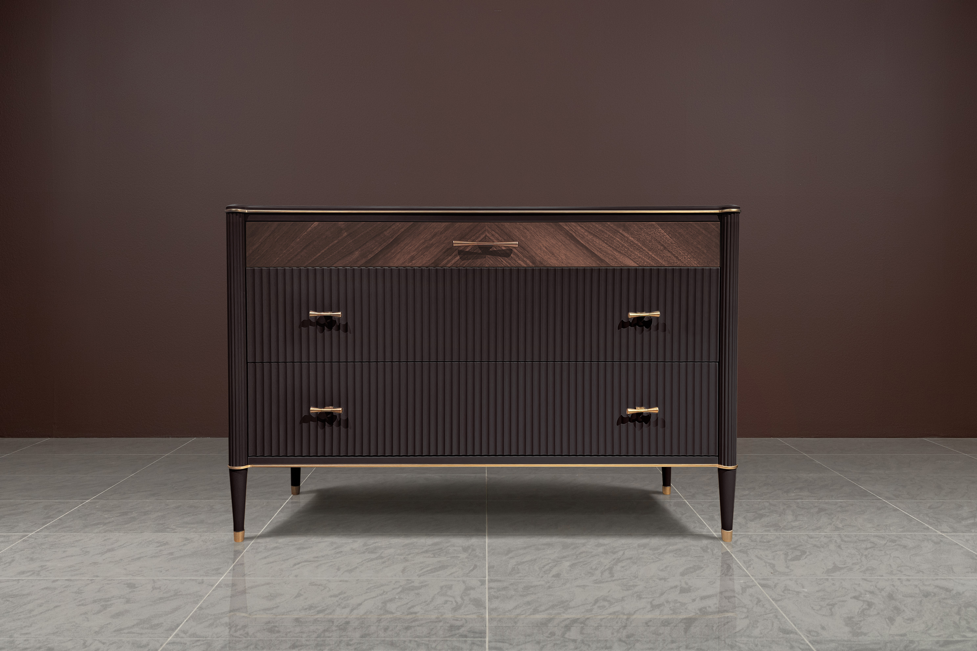 Спальня Венеция в темных тонах создает атмосферу уюта, богатства оформления интерьера и некой, обязательной для спальной, романтики, благодаря плавным линиям фасадов, округлым пилястрам и непередаваемому итальянскому изяществу.